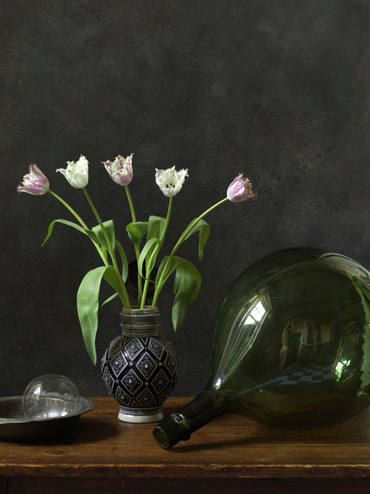 Stillife with Flowers on cocktail table - Photography, Hahnemuhle Baryta pint on dibond, framed or mounted with Diasec Trulife, 70 x 52,5 cm, ed. 8 € 3.750,- (incl. 9% BTW), 100 x 75 cm, ed. 5 € 4.250,- (incl. 9% BTW), 133,5 x 100 cm, ed. 3 € 5.750,- (incl. 9% BTW)