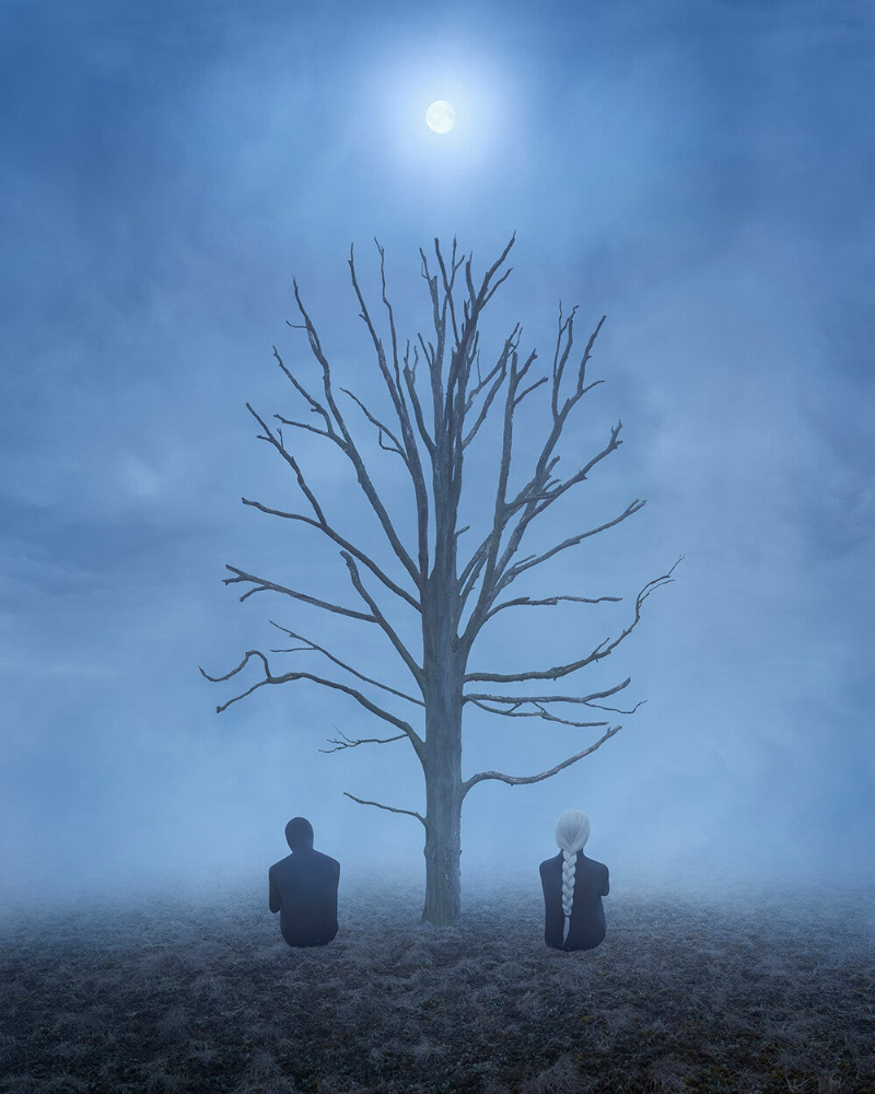 My images can seem very minimal, but in-fact they take anywhere from weeks to months of planning and preparations before they come to life. My work first takes forms when I research or brainstorm on the project I want to create. I then sketch out my ideas with notes of how the image will come to life from my vision into reality. I will decide, location, weather, mood, colors, props, subject, outfit etc. before I photograph the image. Many times I have to travel to specific locations in the world to create my work in order to bring my vision into life. Once on location I create my images usually around sunrise/sunset in a limited time constrain, or in foggy weather. If I have to manipulate something I will shoot all the details on location to later merge them together digitally. Post-Production plays an important role to enhance my work into a more surreal and otherworldly atmosphere. I can spend anywhere from a few days here to weeks to create one single image.