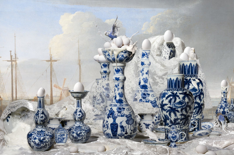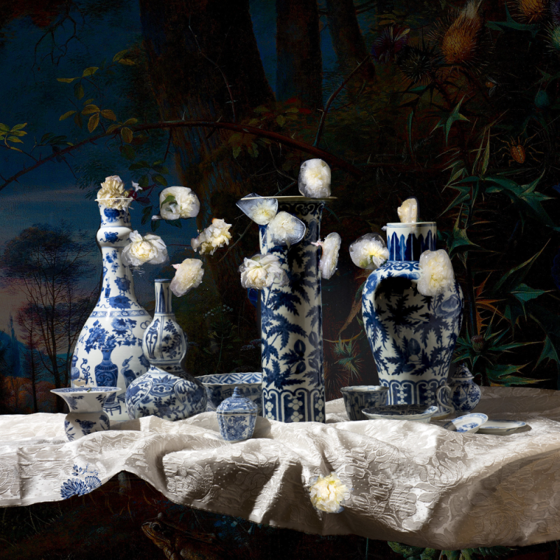 Dutch still life in Delftware - Photography, fine art print on dibond, framed with museumglass, 2016, 100 x 150 cm, ed. 9 + 2 AP, € 6.750,-- ( incl. 9% BTW )