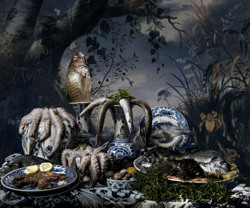 Fish still life in Delftware - Photography, fine art print on dibond, framed with museumglass, 80 x 120 cm, ed. 9 + 2 AP, € 5.400,-- ( incl. 9% BTW )