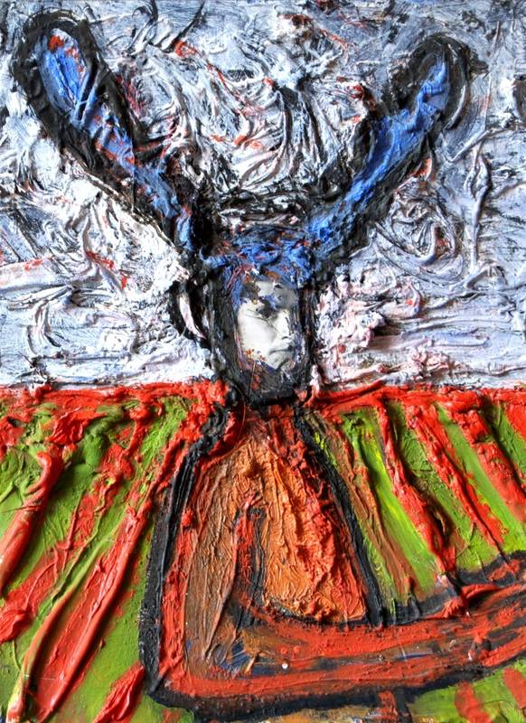 Schreeuwlandschap (Screaming into the dark) - Painting, oil, varnish and tar on paper, 79 x 97 cm, framed, 2014, € 3.500,- ( incl. 9% BTW )