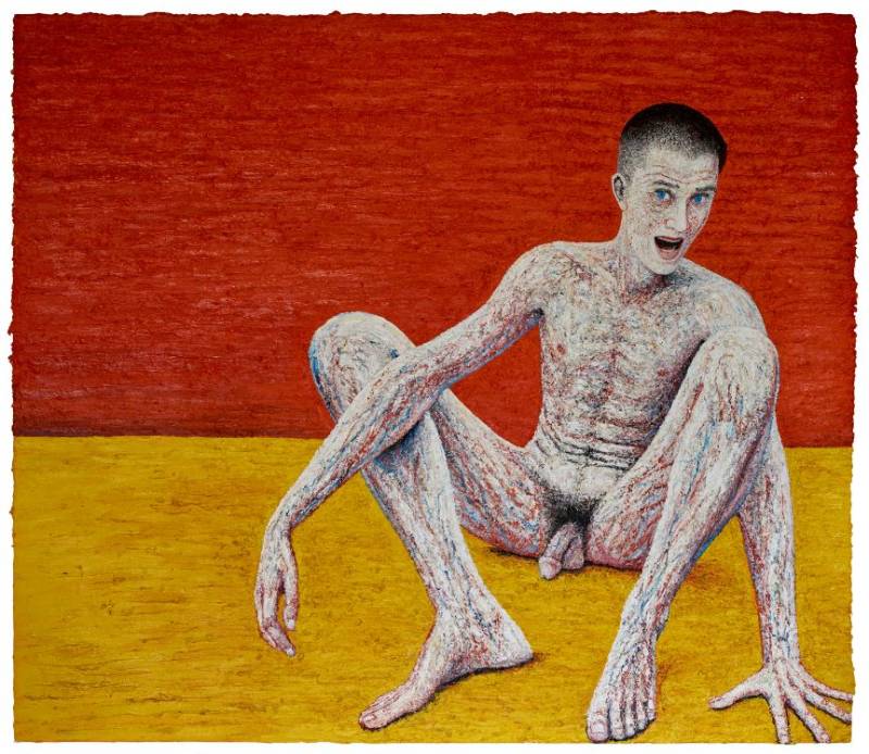NEE - Painting, oil, latex, hair, sheep's wool on paper, 2014, 107 x 79 cm, framed, € 3.750,- ( incl. 9% BTW )