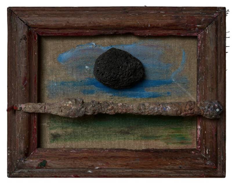 Landschap - Painting, lava stone, brush, frame, oil on canvas, 2016, 26 x 34 cm, € 1.750,- ( incl. 9% BTW )