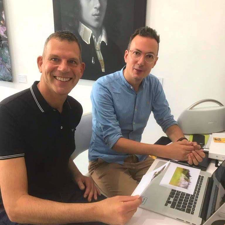 Work meeting together with Maarten Vromans. Soon he will present a new photo series 'No horizon'. In Switzerland he traveled over snow-covered mountain peaks and through green valleys. He saw beautiful landscapes passing by in which the horizon was rarely visible. More information: zerp.nl/maarten-vromans