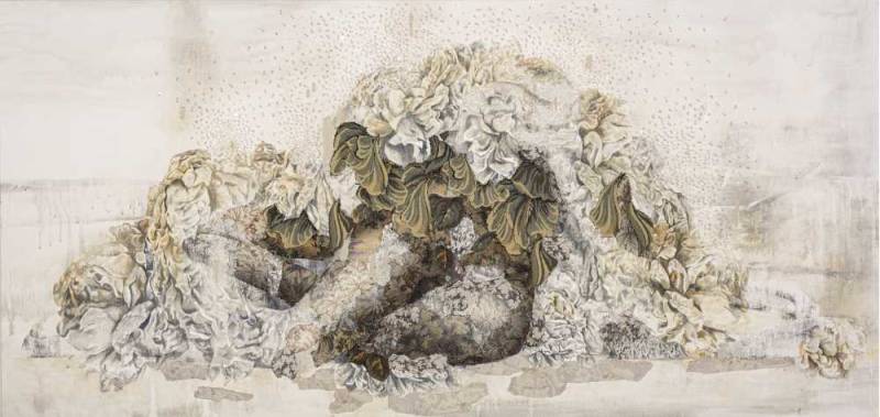 Anne von Freyburg - Gravitation - Painting, sanding, acrylic, graphite, sequins, textiles, Swarovski crystals, glass beads and hand-embroidery on canvas, 2019, 90 x 195 cm, € 9.000,- ( incl. 9% BTW )